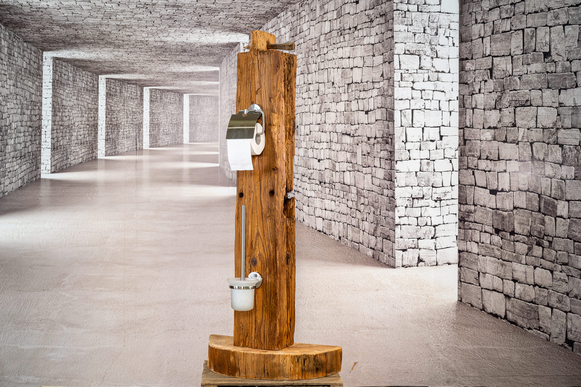 Toilettengarnitur aus Altholz auf Tannensockel (halbrund) – H: ca. 127cm, B: ca. 55cm, T: ca. 25cm – 130,00€