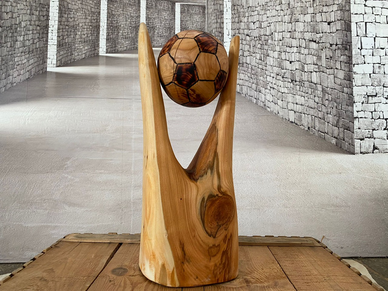 Fußball-Trophäe aus Kirschholz H: ca. 47cm B: ca. 21cm H: ca. 14cm – leider schon verkauft